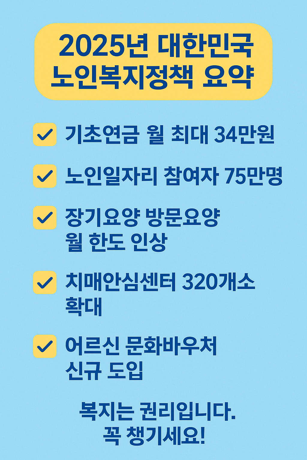 안녕하세요. 대한민국은 초고령사회로 접어들며 65세 이상 인구가 전체의 21.1%를 넘어섰습니다. 이제 노인복지는 우리 모두의 삶과 직결된 중요한 과제가 되었죠. 오늘은 2025년 최신 대한민국 노인복지 정책 및 제도를 정리해드릴 테니 부모님께도 꼭 알려드리세요 😊