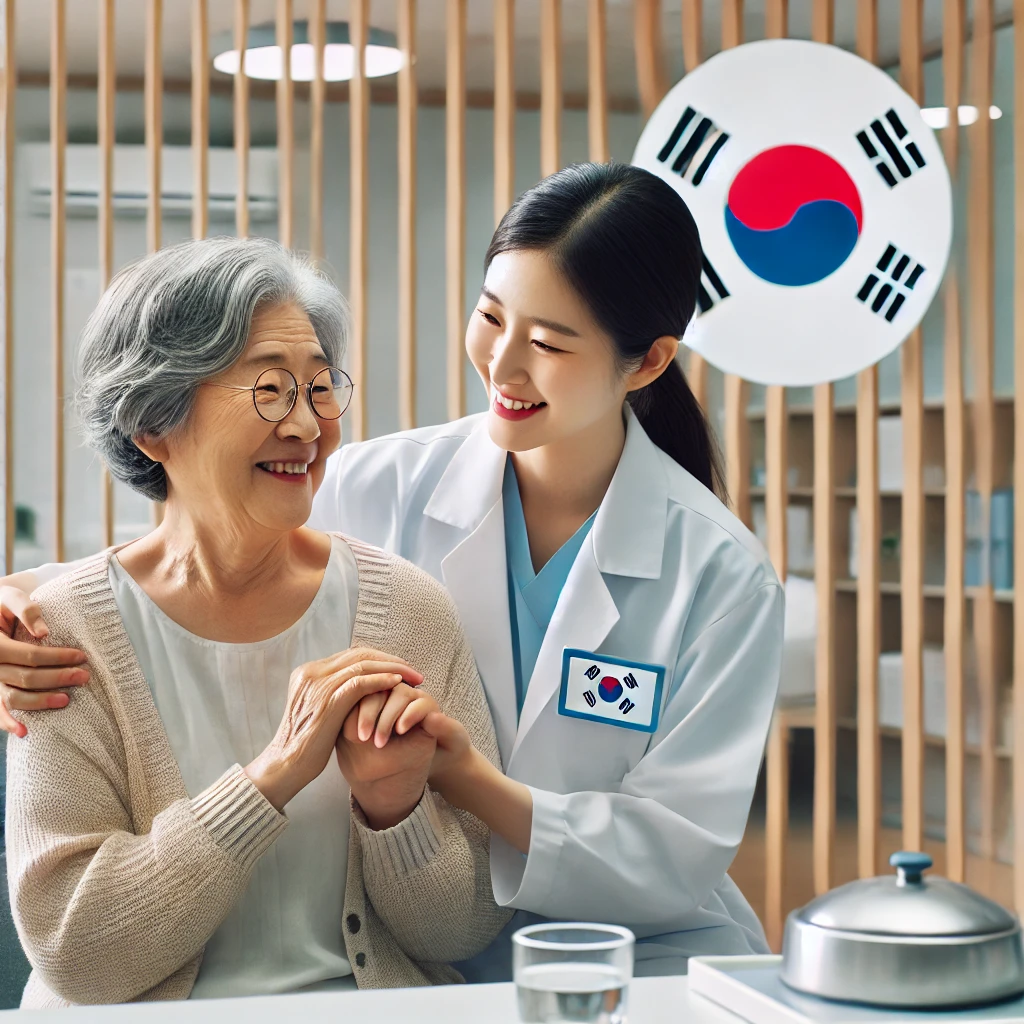 공공의료시설에서 노인이 돌봄을 받는 장면
